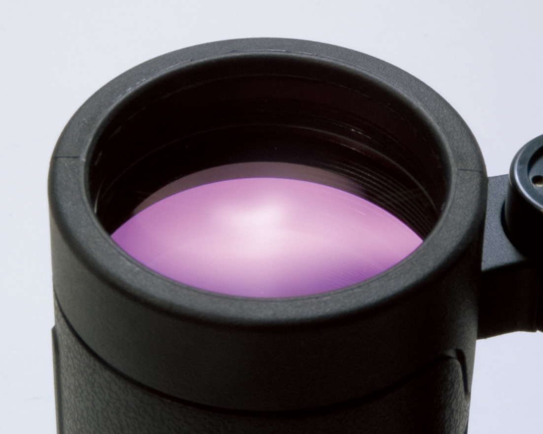 大部分雙筒望遠鏡鏡片上會有鍍膜,目的是為了降低反射率同時增加透光率,目前雙筒望遠鏡鏡片與稜鏡設計的組合都在 7~12 片不等,光線在這麼多的的鏡片反射與干擾下,影像會變暗或變得模糊,但經過鍍膜的鏡片能將反射的光降低,所以和未經鍍膜處理的鏡片比起來,影像清晰明亮許多,進而減少鬼影亂反射的情況,及增加影像反差。