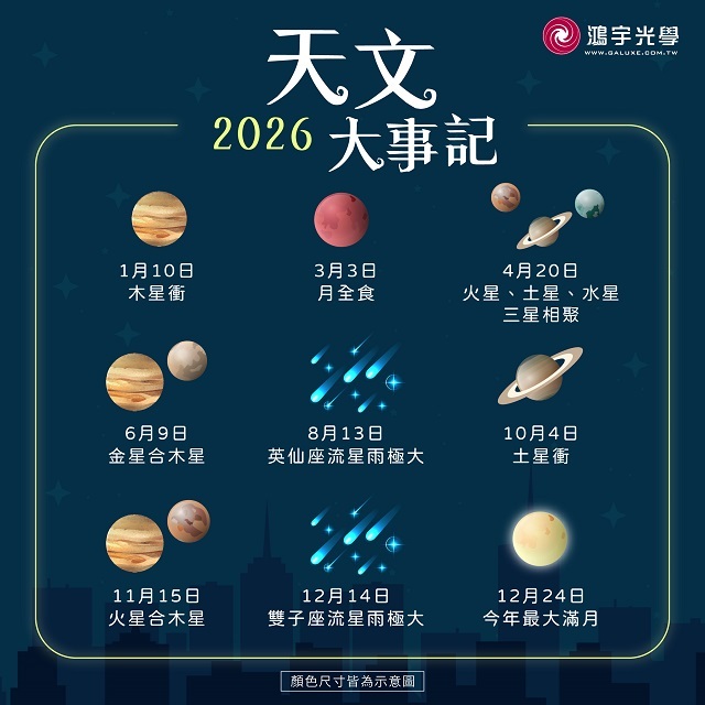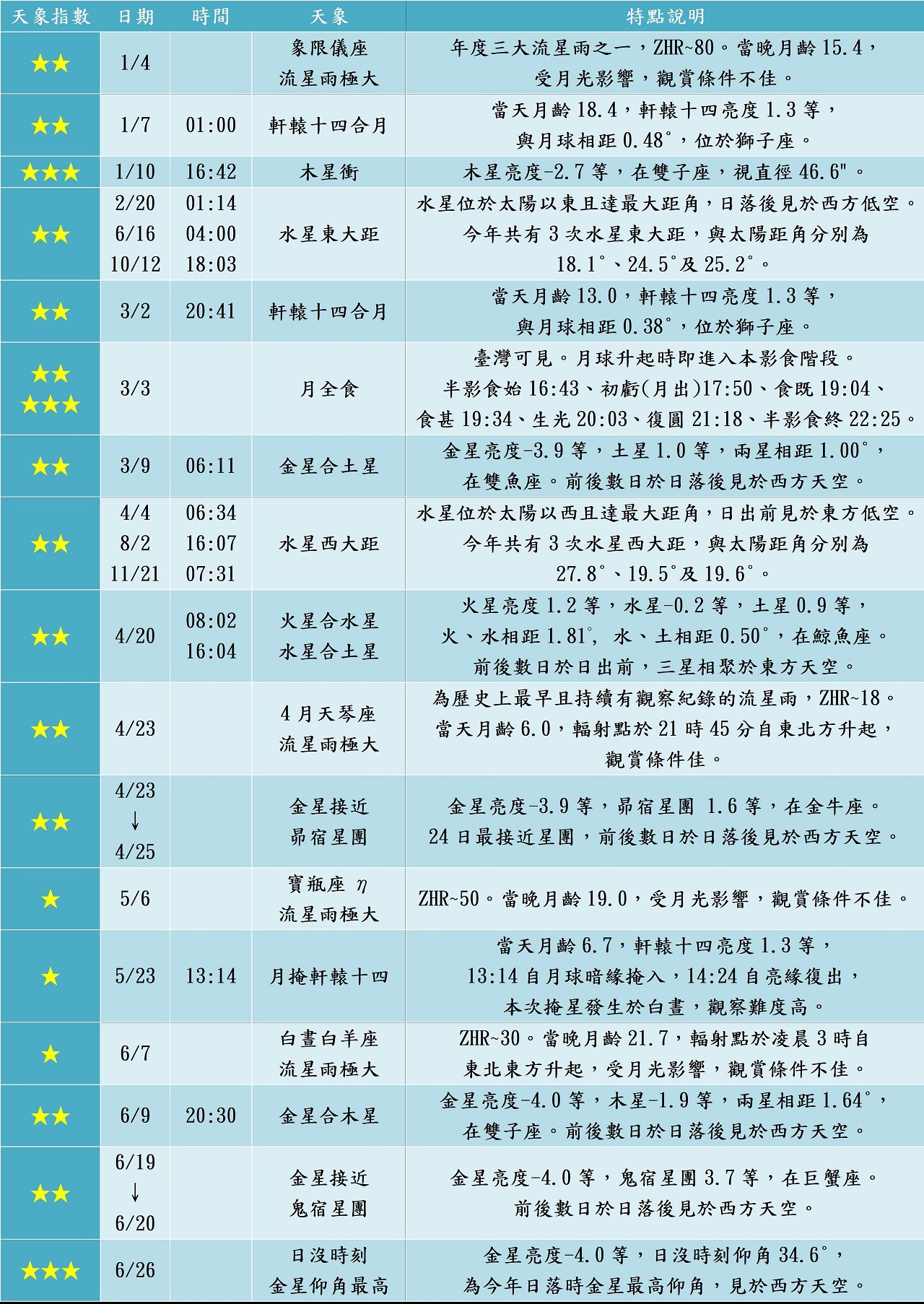 主要參考資料:臺北市立天文科學教育館,2026年重要天象表。