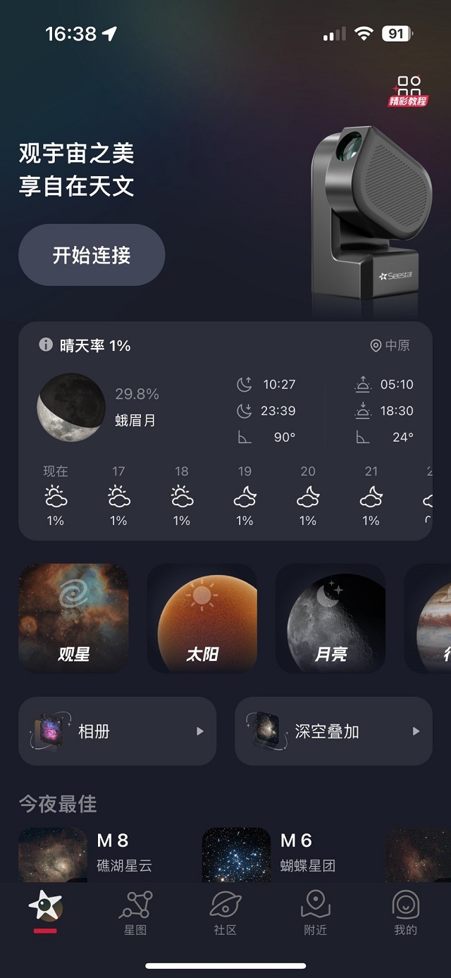 直接打開手機APP點選自動推薦的「今夜最佳」目標,不再擔心對觀測目標沒有想法,帶你輕鬆得知當晚最適合拍攝的天體。