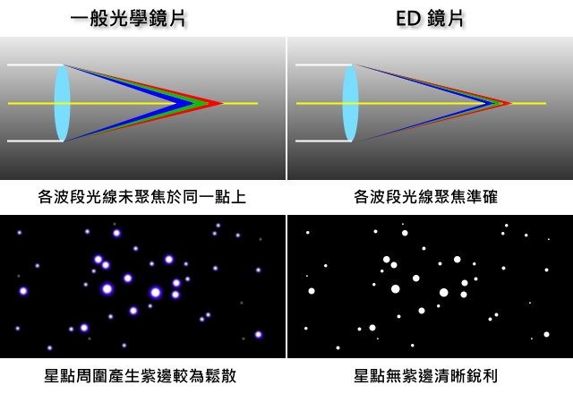 光線穿透玻璃都會產生色散的問題,尤其單筒望遠鏡倍率比雙筒高出許多。目前各大知名品牌的高階款式都已導入超低色散含氟化物的螢石鏡片或ED鏡片,以降低高倍率時所伴隨而來的色散現象,所以只要是歐、日的一線大廠,光學品質都在水準之上。