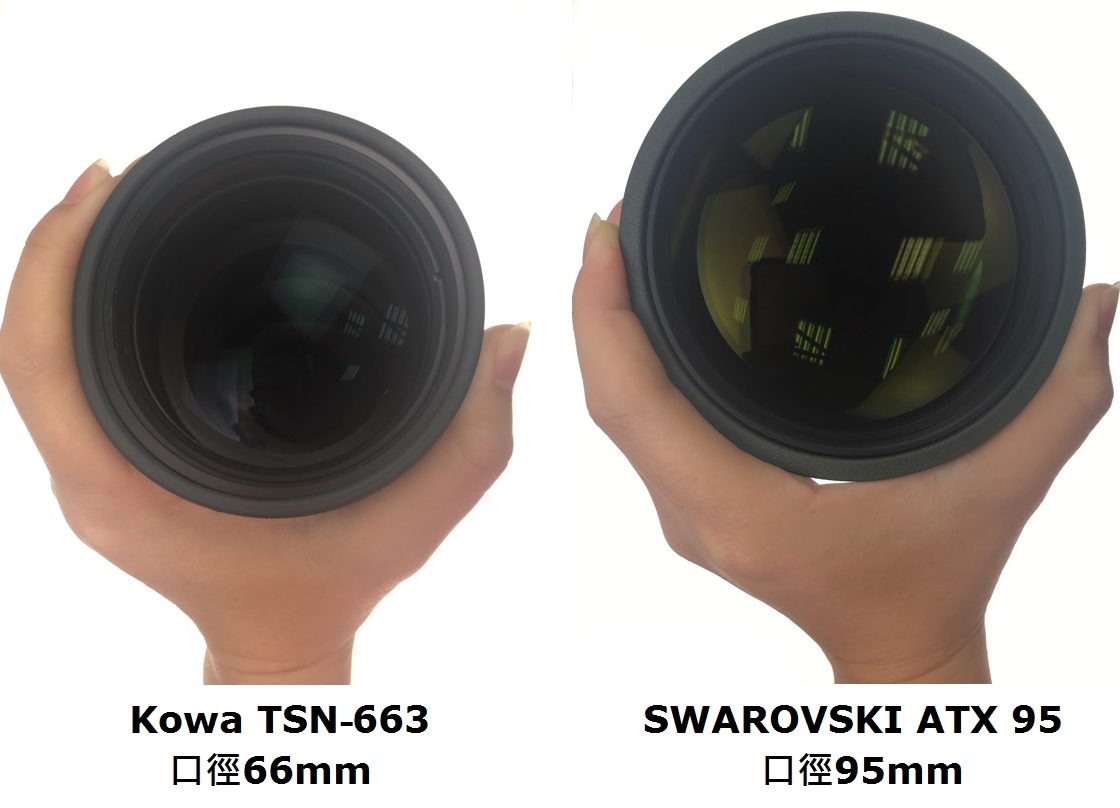 若您以光學品質優先考量者,可選擇口徑80mm甚至85mm以上的大口徑機種,例如 Kowa TSN-88A 、SWAROVSKI ATX 95、ZEISS Victory Harpia 95 等。
