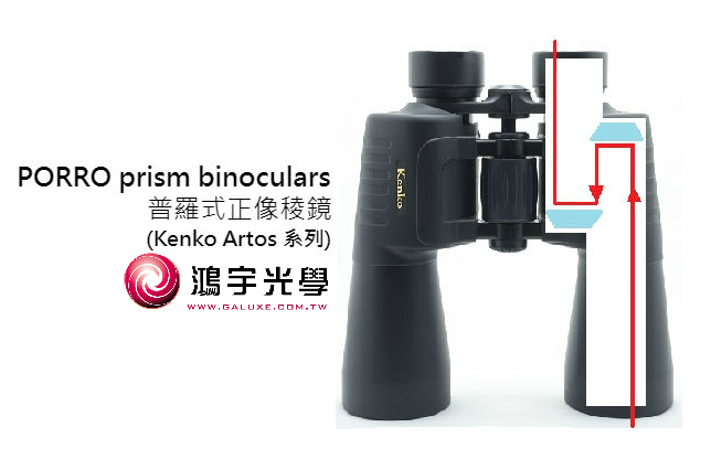 雙筒望遠鏡內部的正像稜鏡可將倒立影像反轉成正像,是不可或缺的元件。傳統普羅式(Porro)稜鏡體積較大重量也較重,價位相對較為便宜;另一種筆者比較推薦使用為直筒式或稱屋脊式(Roof) 稜鏡,結構緊湊體積較小,攜帶性與實用性較佳。