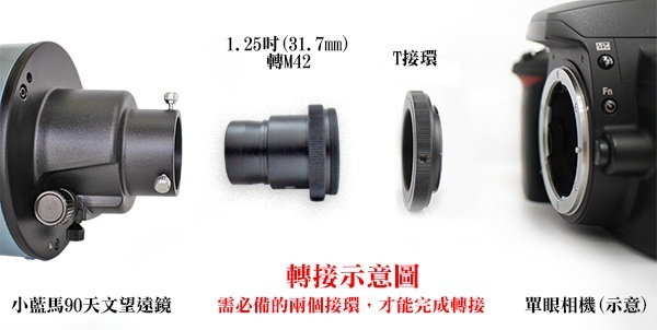 DSLR攝影接環 + 42mm T 接環組合 (絕大部分單眼相機都可銜接,請於訂單備註相機型號或下單前傳訊息詢問)