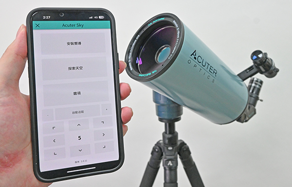 ACUTER小藍馬90天文望遠鏡 小藍鯨電動經緯儀 採用 90 mm Maksutov–Cassegrain 結構,焦比 f/131170 mm),鍍膜系統提升畫質與對比。FAST 專利摩擦式對焦配有雙旋鈕與距離標尺,可快速切換 8m17m 焦距,聚焦流暢迅速。輕盈鏡筒僅1.9 kg,觀月、行星、雙星細節清晰呈現,亦適合長途旅程攜帶。雖然體積迷你,但功能一點不打折扣。搭配內建正像稜鏡,直觀地呈現自然正立影像,讓月球坑洞、行星環帶或地景觀測,都能一目了然。