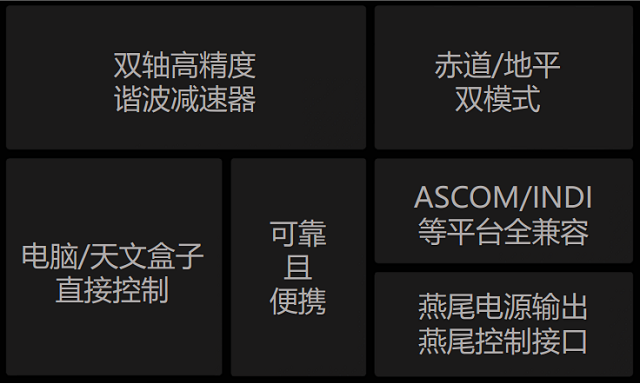 ※由於諧波式赤道儀採無重錘可運作的特性,其馬達扭力較傳統赤道儀大上許多,因此使用前/架設時,務必謹慎評估器材接線佈局之合理性及安全性,否則恐造成本產品、望遠鏡或周邊設備因不當拉扯導致損壞,此情形並不屬於保固範圍。