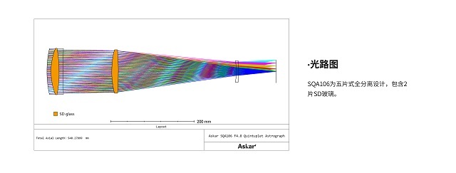 | 物鏡類型 | 五片式全分離Petzval APO(包括兩片SD玻璃) |