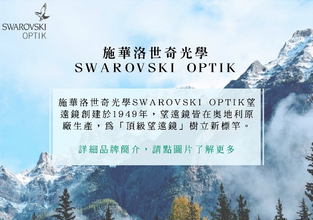 施華洛世奇 AT/ST Balance系列,筒內灌入氮氣,防霉、防霧,IP68防護等級;適用於-20℃~+50℃環境使用,全天候性能強,配合SWAROVSKI望遠鏡各項優秀性能,原廠提供十年保固服務。