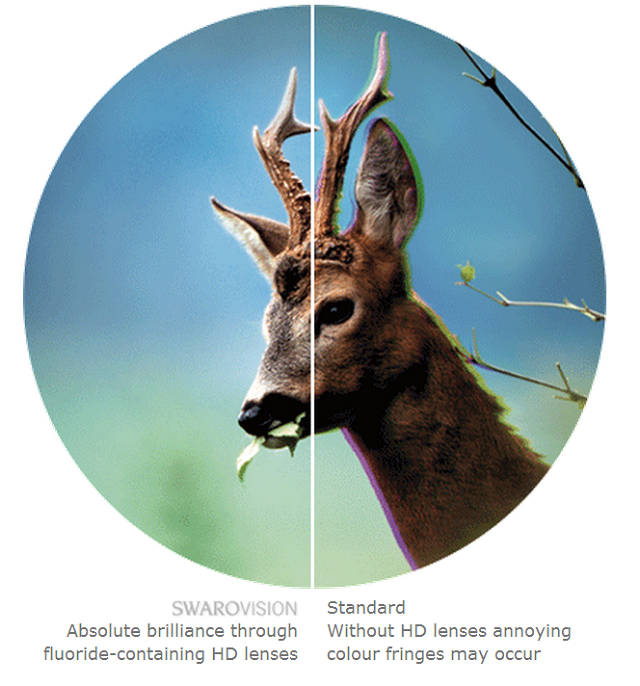 採用含氟離子超消色差物鏡及高解像鍍膜,可大幅改善紫邊現象,無論眼視觀賞或數位攝影,都能帶給您最逼真、細緻的影像呈現;專利SWAROTOP® 及 SWARODURE® 多層鍍膜,大幅增加透光率。