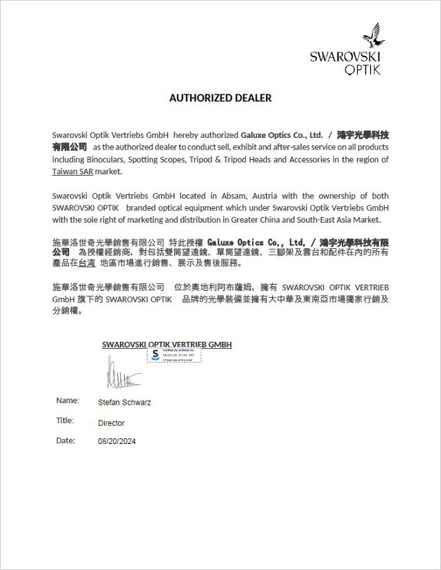 鴻宇光學為奧地利SWAROVSKI OPTIK望遠鏡正式原廠授權代理商,產品皆為奧地利原裝進口,品質經過嚴格把關,並有專業的進貨品管檢驗程序。