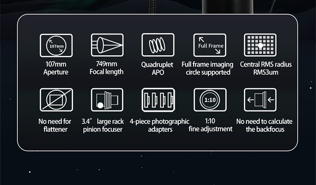 | 物鏡 | 四片式APO (含兩片ED鏡片) |