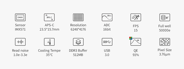 | 滿阱電荷數 | 50Ke~*73Ke(*滿阱擴展模式) |