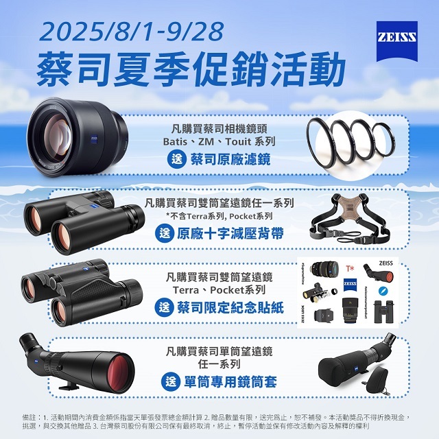 2025/8/1~9/28凡於期間內購買雙筒望遠鏡任一系列 (不含 Terra、Pocket系列),贈送原廠十字減壓背帶一個。