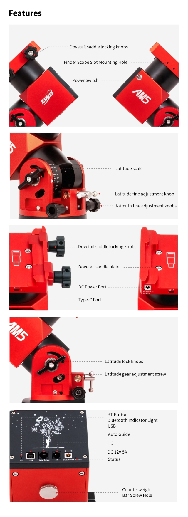 | 電源功耗 | 12V / 0.5A (待機), 12V / 0.7A (追蹤), 12V / 1.2A (GOTO) |