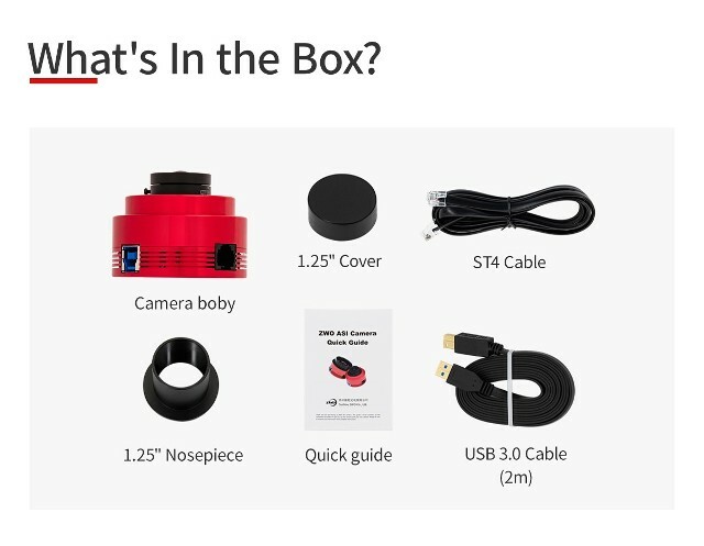 USB3.0連接線、ST4導星線、CS鏡頭、M42轉1.25吋接環、快速指導手冊