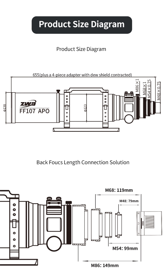 | 鏡後端四段式接管規格 | M86*1-M68*1 |