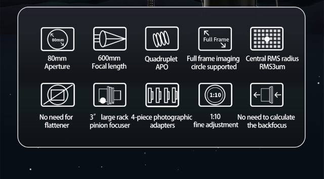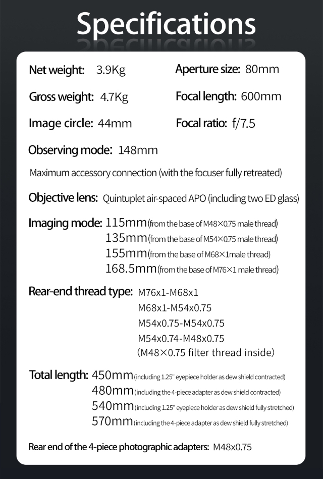 | 物鏡 | 四片式APO (含兩片ED鏡片) |
