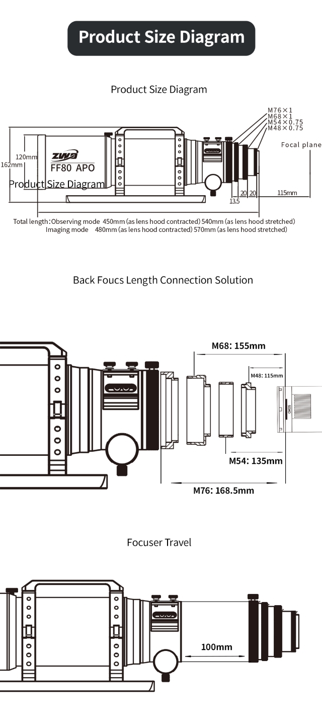 | 對焦座規格 | 3” 對焦座附帶1:10雙速調焦裝置 |