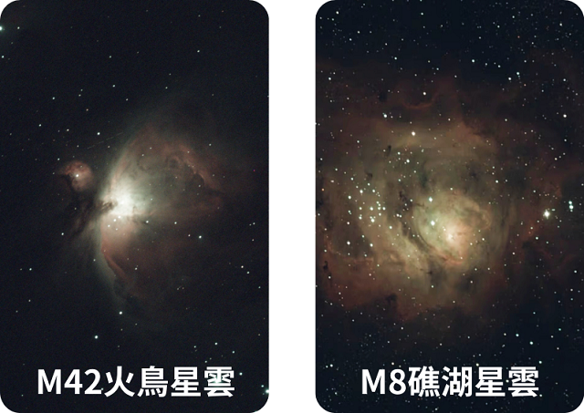 左:未使用雙峰窄頻濾鏡,天體雲氣黯淡