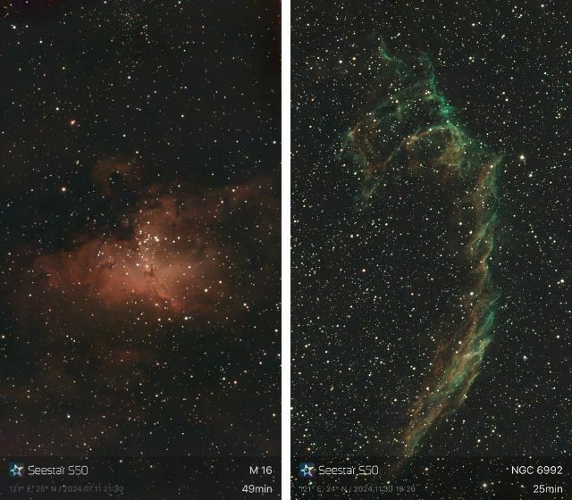 雙峰窄頻濾鏡實拍比較 (以下為Seestar S50實拍照片)
