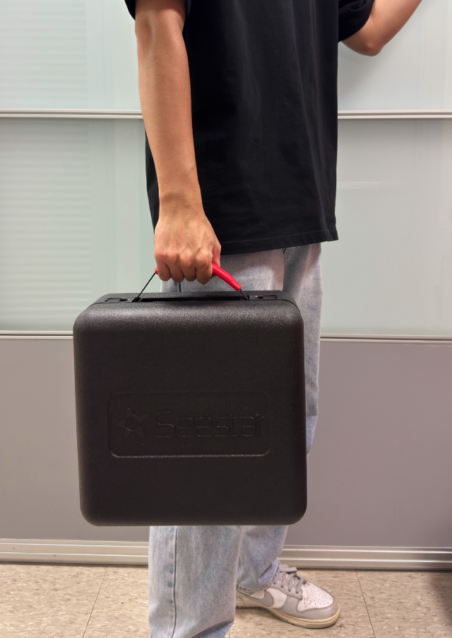 含手提式外箱,方便攜帶,能將Seestar S50主機、腳架等配件放入箱中,保護望遠鏡本體。